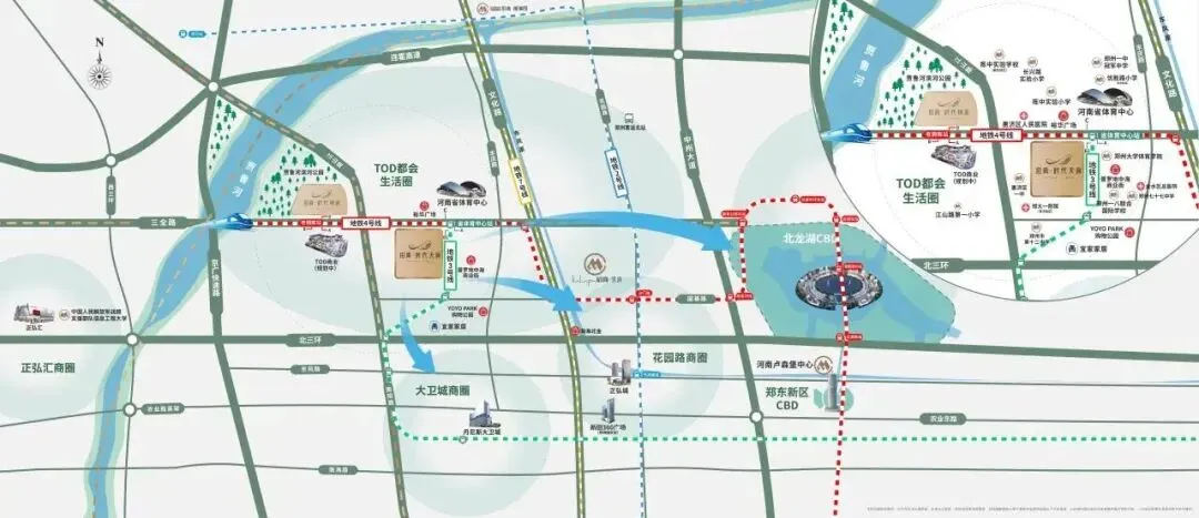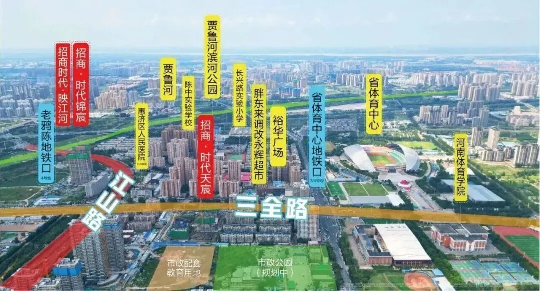 招商蛇口老鸦陈城市更新项目,位于惠济、金水北、高新老城三区交汇处,也是贾鲁河、三全路和江山路“三条金线”的交会之地,落位城市级地标的黄金位置。周边出行交通便利,3、4号地铁线双轨交汇;下楼即享永辉超市;约15分钟生活圈内,宜家家居、省体育中心、普罗地中海商业、信万广场等超配资源轻松享有;郑大一附院惠济院区、长兴路卫生服务站保障步行就医需求。