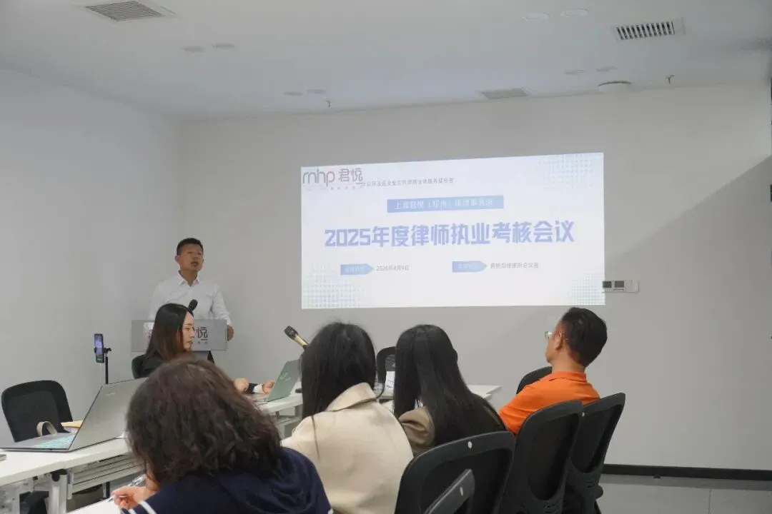 为加强行业自律管理,促进律师行业规范、有序、健康发展,2026年4月9日,上海君悦(郑州)律师事务所根据郑州市司法局、市律师协会《关于开展2025年度律师事务所检查考核和律师执业年度考核工作的通知》的部署,组织召开年度律师执业考核会议,全所执业律师参会并进行现场述职评议。