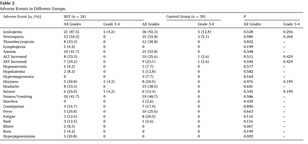 在I期试验确认安全性的基础上,团队进一步开展了更具挑战性的IIa期研究,专门针对高级别脑干胶质瘤,并设立了同期对照。该研究将接受“声动力疗法+标准Stupp方案(放化疗)”的24名患者(SDT组),与同期仅接受“标准Stupp方案”的39名患者(对照组)进行比较,结果发表于《Photodiagnosis and Photodynamic Therapy》。安全性再次验证:联合治疗组的不良事件发生率与对照组无显著差异,且绝大多数为1-2级,再次证实了该方案叠加在标准治疗之上的安全性。疗效数据全面胜出:肿瘤反应更好:SDT组的客观缓解率(ORR,即肿瘤显著缩小的比例)达到33.3%,显著高于对照组的10.3%。研究报告中甚至出现了1例达到完全缓解的病例,其MRI影像显示肿瘤近乎完全消除,增强了治疗反应的证据。病情控制更持久:SDT组病情得到控制的持续时间中位数(DDC)为10.1个月,也显著长于对照组的6.8个月。生存期显现延长趋势:SDT组的中位无进展生存期(11.5个月)和总生存期(15.6个月)均优于对照组(6.0个月和10.8个月)。其中,6个月和1年的无进展生存率显著更高。生活质量改善更快:治疗后1个月,SDT组患者的体力状况评分(KPS)改善程度显著优于对照组,意味着患者的生活质量在短期内能得到更快提升。“剂量依赖性”效应——治疗越多,获益越大:研究中的一个重要发现是,接受超过2个周期声动力治疗的患者,其中位总生存期达到了 20.9个月,显著优于接受≤2个周期治疗的患者(14.9个月)。这清晰地表明,足程、规范的治疗能为患者带来更大的生存获益。