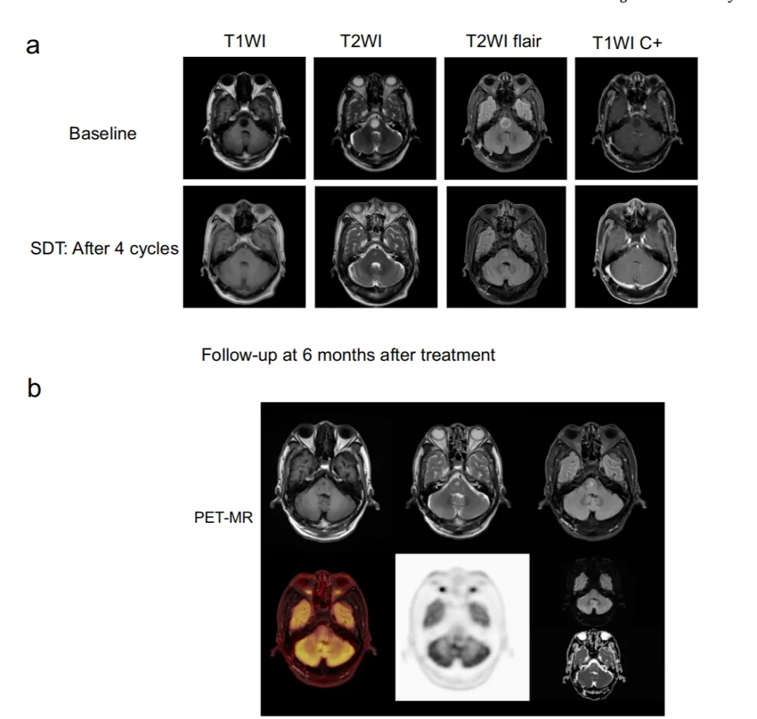 图6. 1例高级别患者达到完全缓解的病例,其PET-MRI影像显示肿瘤近乎完全消除。