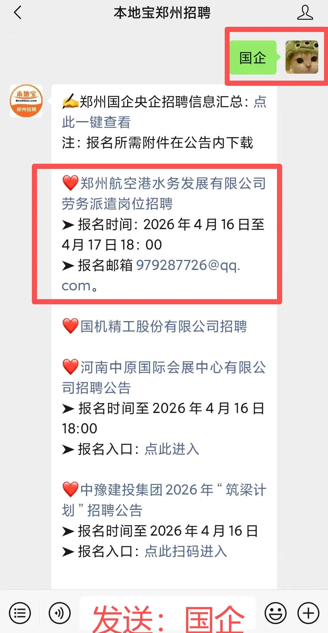 回复【国企】获取郑州国企招聘信息