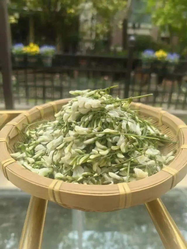 回到家,我把槐花轻轻倒到竹筐里。一小串一小串的,有的还带着小嫩叶。满屋子立刻浮起槐花的甜香来,清清的,淡淡的,像月光洒了一地,你闻得到,却捉不住。就那么若有若无地飘着,一呼一吸间,全是春天的味道。