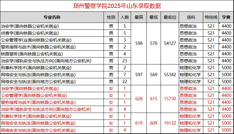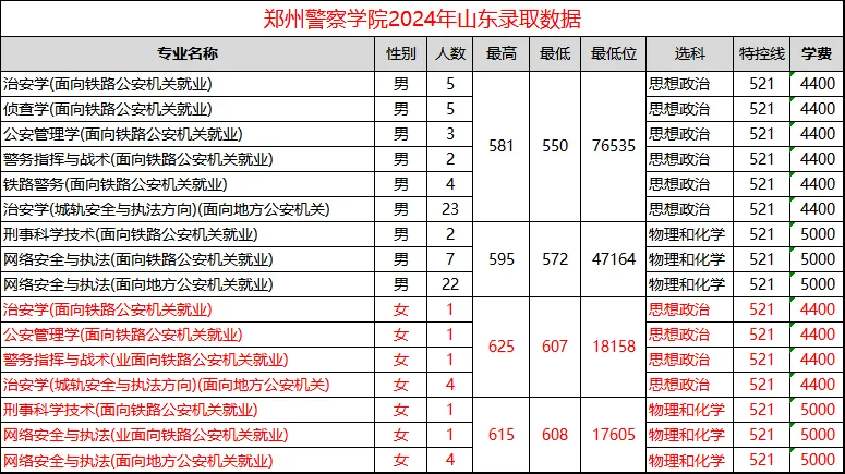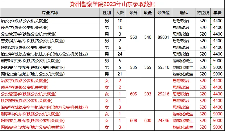 郑州警察学院在山东历年录取分数统计,供家长和考生参考。