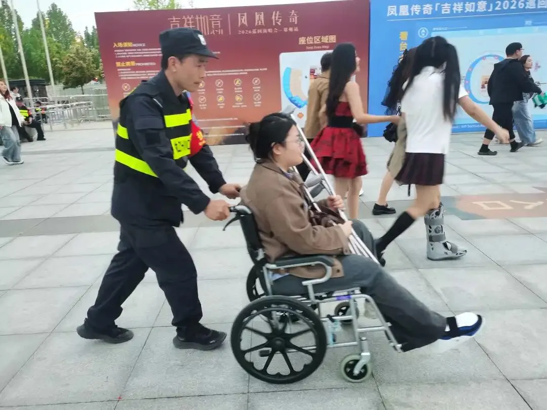 在演唱会入口,一位坐轮椅的观众面露难色。正在执勤的队员二话不说,主动上前,小心翼翼地推着轮椅,稳稳地通过坡道,一路护送到座位。观众感激地说:“谢谢,你们比家人还细心。”