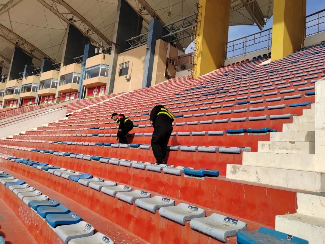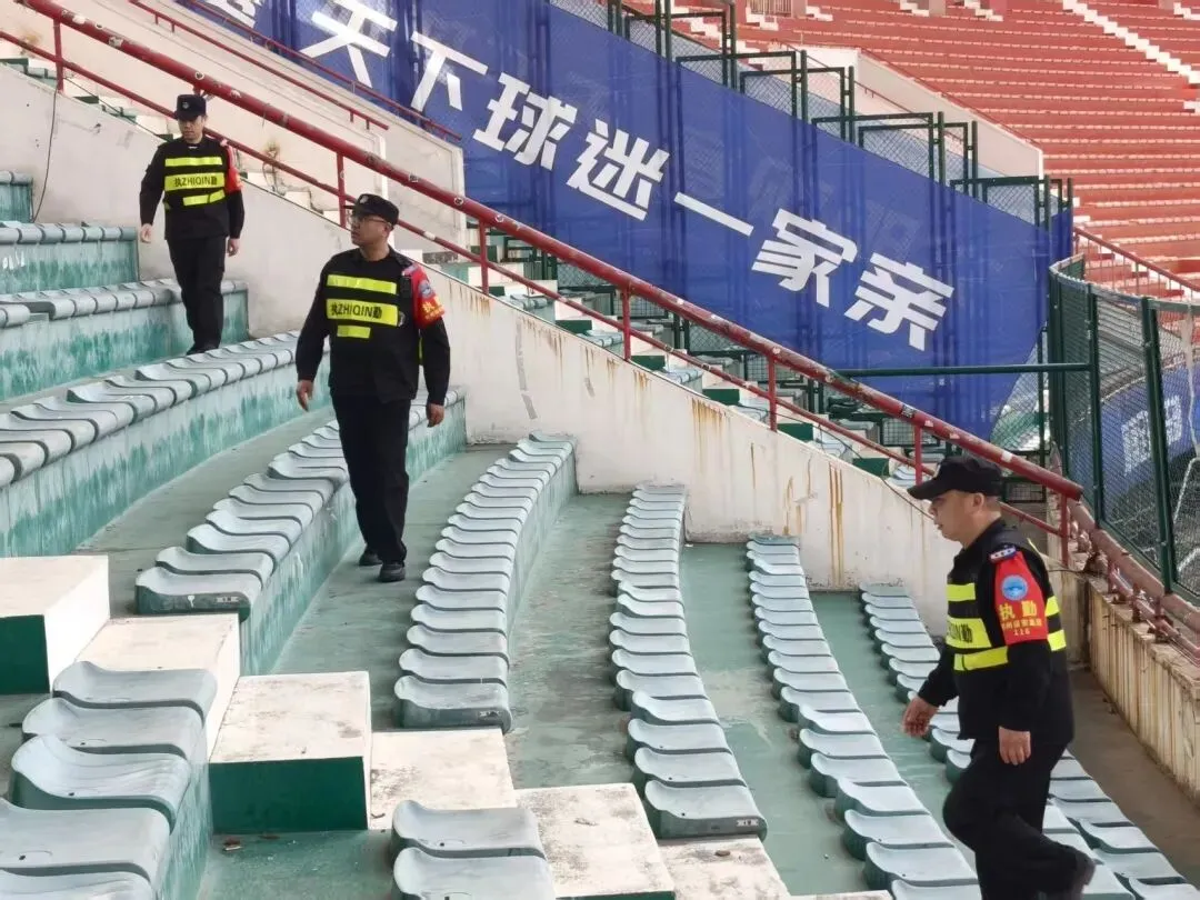赛前,队员们早已对航海体育场的看台区进行了地毯式危险品排查,不放过任何一个角落。