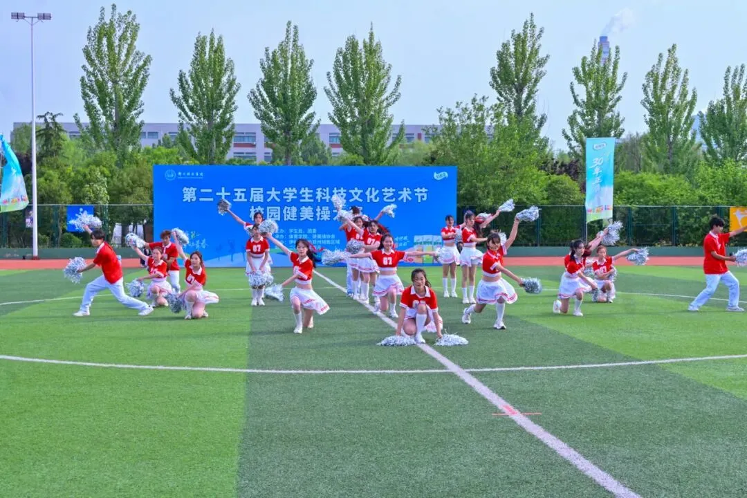 4月15日下午,春光明媚,绿茵如洗。郑州科技学院第二十五届大学生科技文化艺术节校园健美操大赛在北苑足球场火热开赛。本次大赛以“健康第一,律动青春”为主题,由学生处、团委主办,体育学院与健美操协会承办。来自全校各二级学院的三百余名选手齐聚赛场,用跃动的身姿、饱满的热情和昂扬的斗志,共同点燃了这个春日下午的绿茵场。