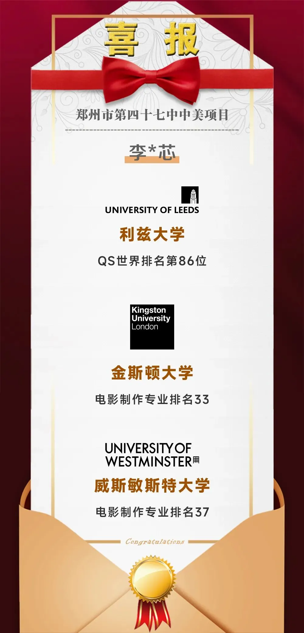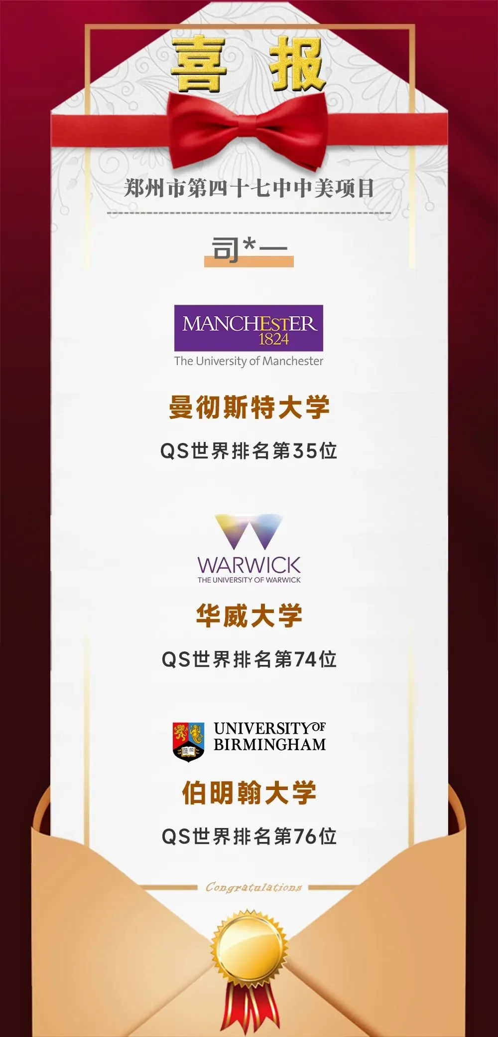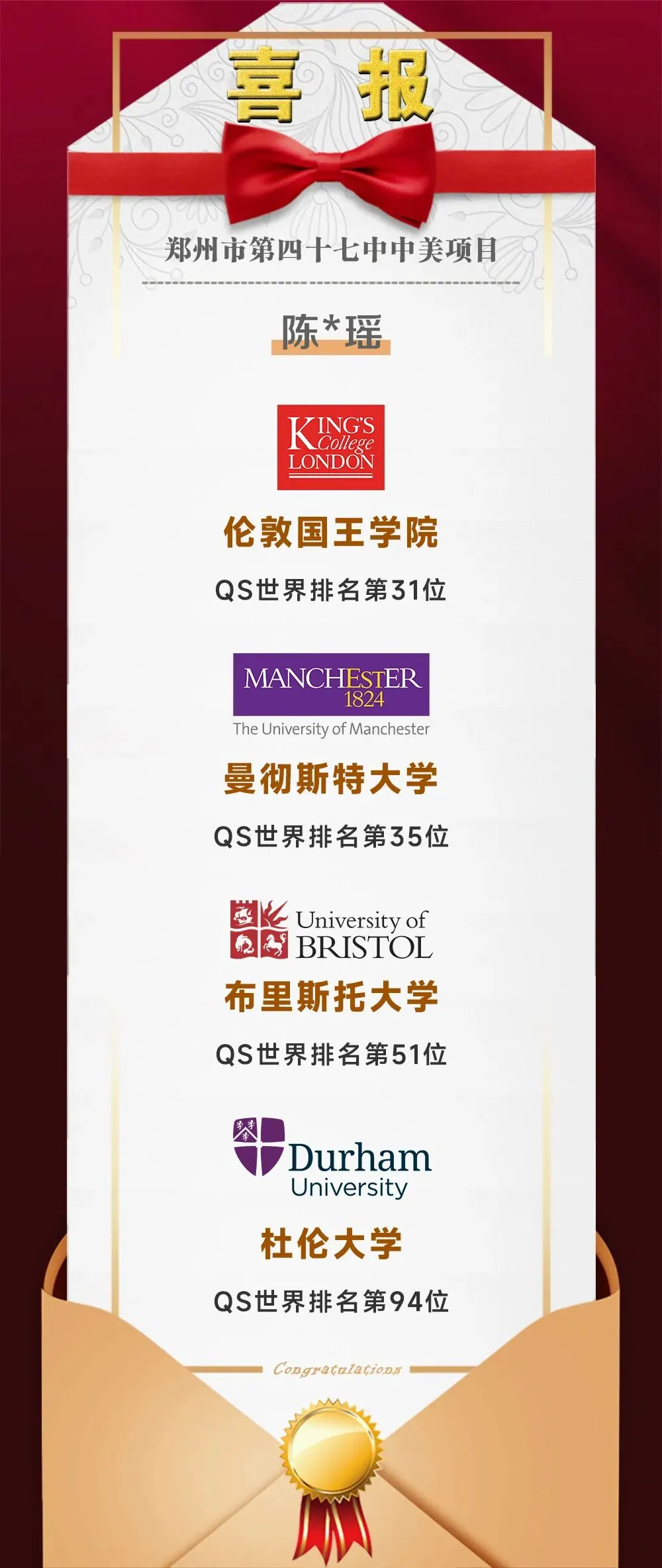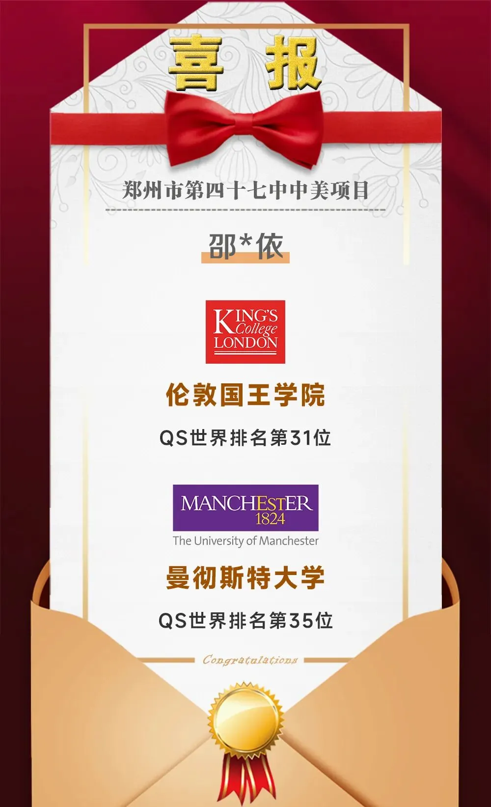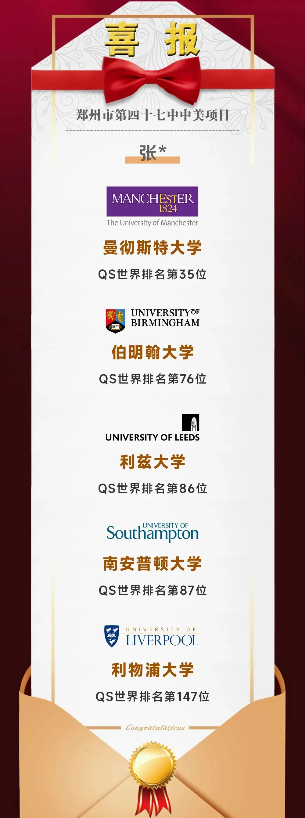 在这个全球申英赛道格外拥挤的申请季,郑州市第四十七高级中学中美班&剑桥A Level班的高三学子们,用一份数量与质量并举的亮眼成绩单,回应了所有期待: