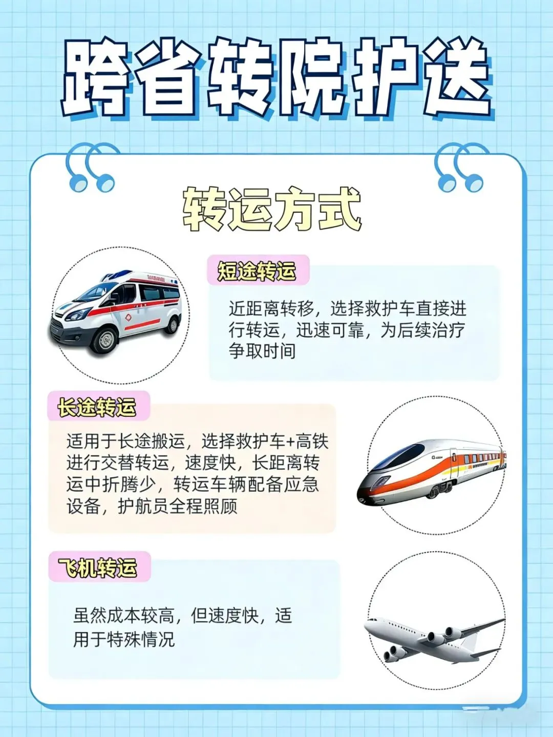 我们致力于为非急救患者提供专业、安全、贴心的转运保障。