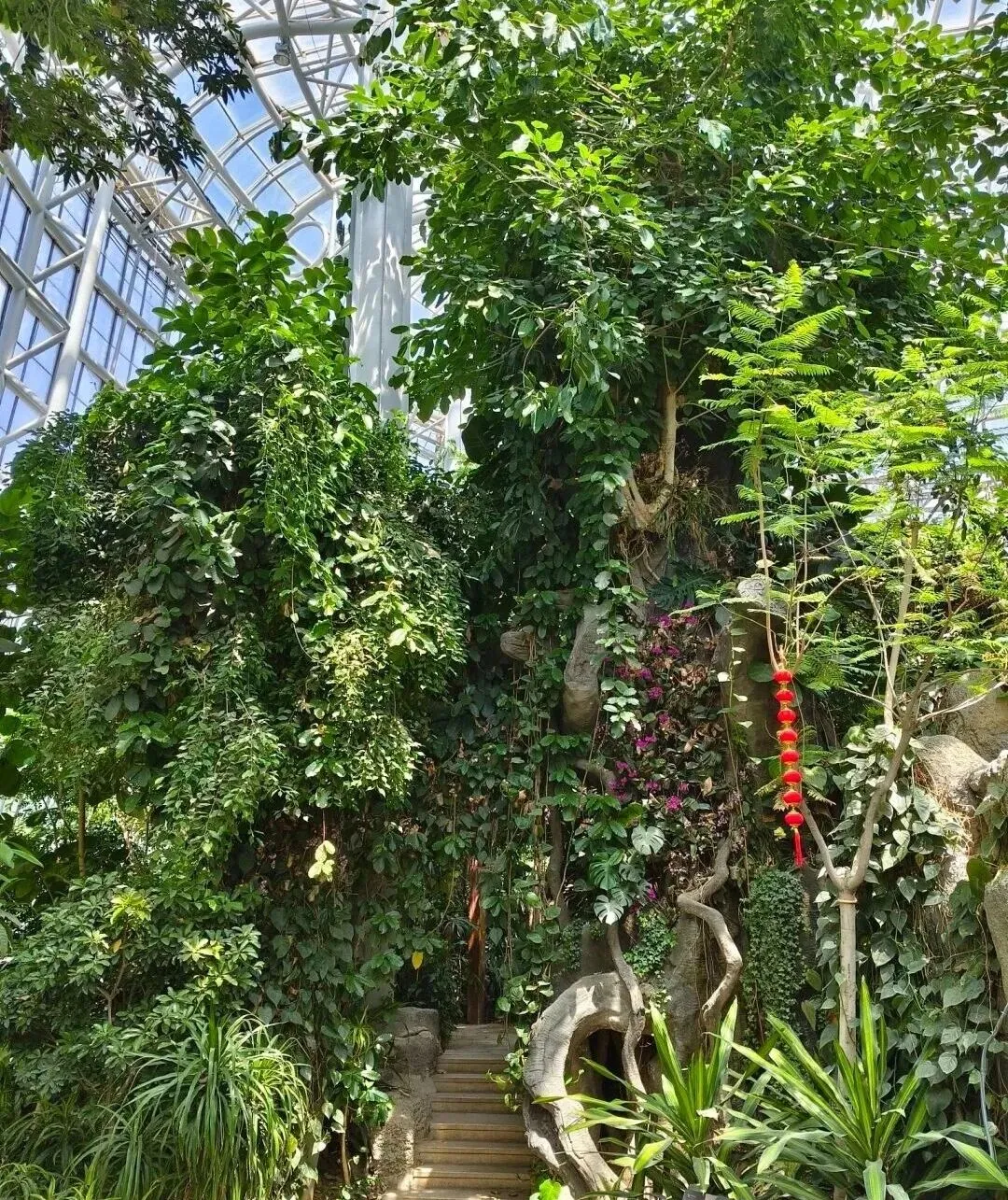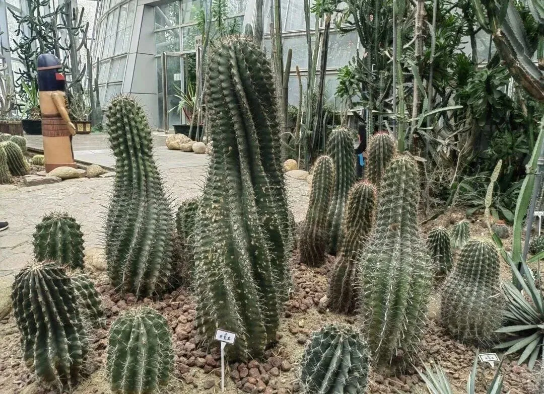 我们在温室待了挺久。外面是早春,有点凉,一推开温室的大门,里面是另一个世界——热带植物、沙漠植物、水生植物,各种叫不出名字的奇奇怪怪的植物挤在一起,空气里都是潮湿的草木香。女儿对着一棵巨大的仙人掌眼睛瞪得圆溜溜的,悄悄问我:"爸爸,这个能吃吗?"