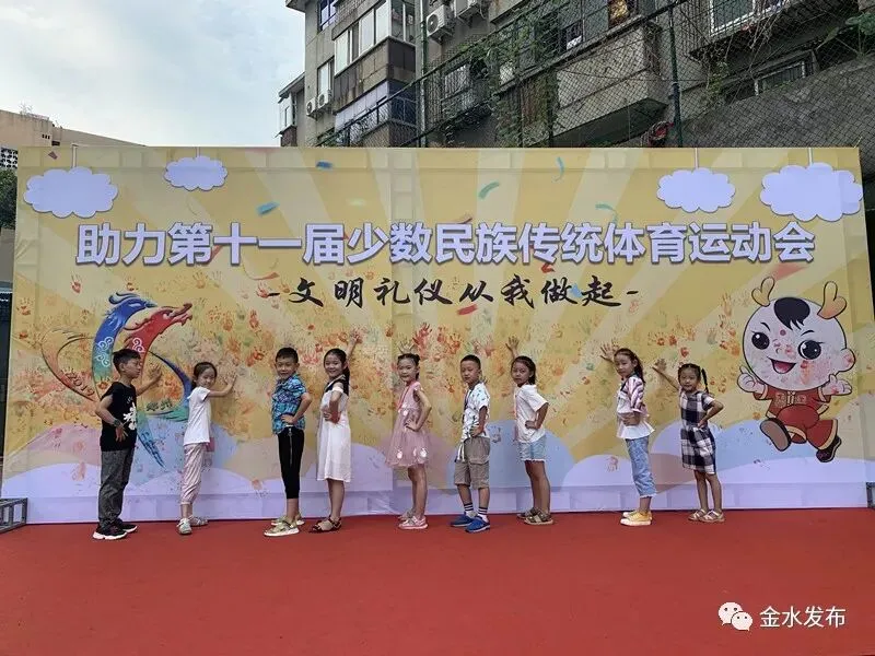 2019年8月,金水区教体局印发了《金水区教育系统“迎民族盛会 庆七十华诞”活动实施方案》,指导全区中小学、幼儿园通过持续推动公共文明常识进学校活动全覆盖,积极配合郑州市城区道路交通秩序综合治理,大力宣传《郑州市文明行为促进条例》和公共文明基本常识,加强校容校貌的优化提升,将围绕民族运动会一直持续开展的文明志愿服务,新学期即将开展的国旗下演讲、少先队活动课、共青团活动课,以及黑板报、手抄报、征文和演讲比赛等统筹纳入学校开学课程,持续推进金水教育系统市容市貌大提升工作取得实效,迎接第十一届全国少数民族传统体育运动会举行,庆祝新中国成立70周年。