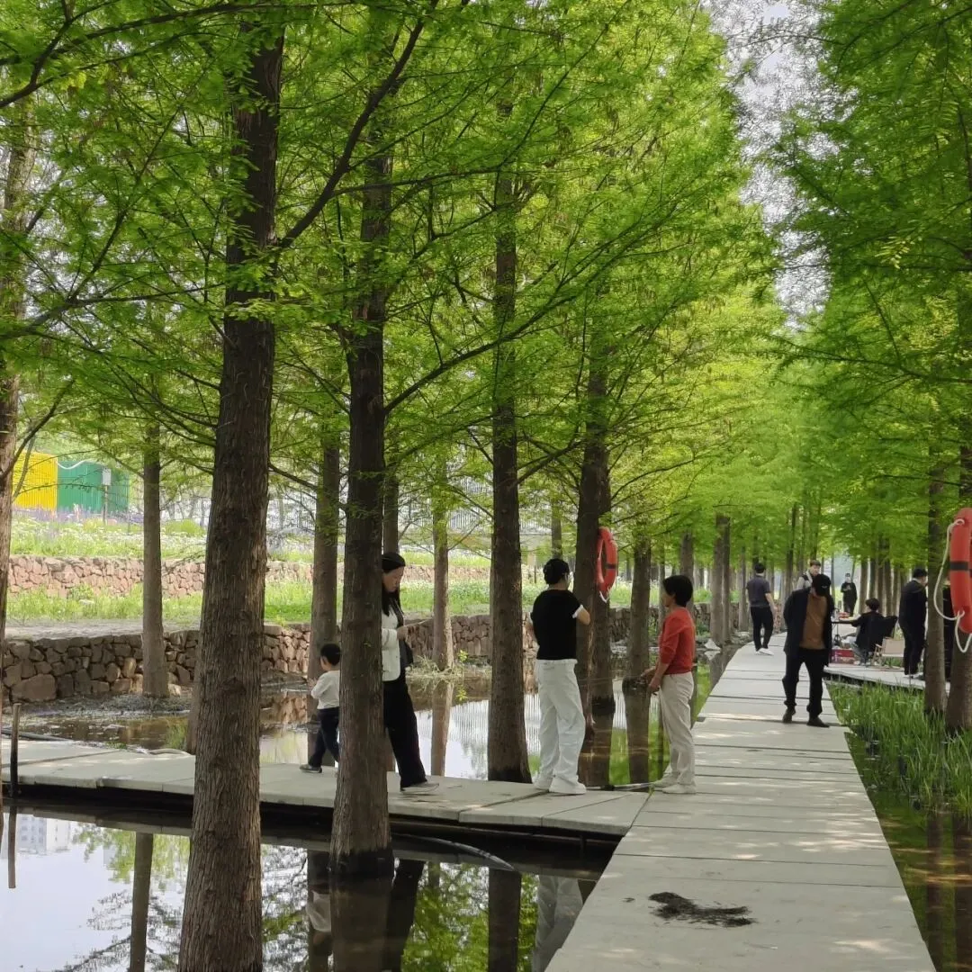 温馨提示:游玩期间请务必远离深水区,牢记安全第一!若想体验“水漫栈道”的独特趣味,建议选择早晨前往,此时邂逅水漫栈道的几率更高哦。当前正值春日盛景,园内水杉抽新绿,正是走出家门、亲近自然、打卡赏景的最佳时节,不妨乘上公交,赴这场与春日秘境的美好邂逅。