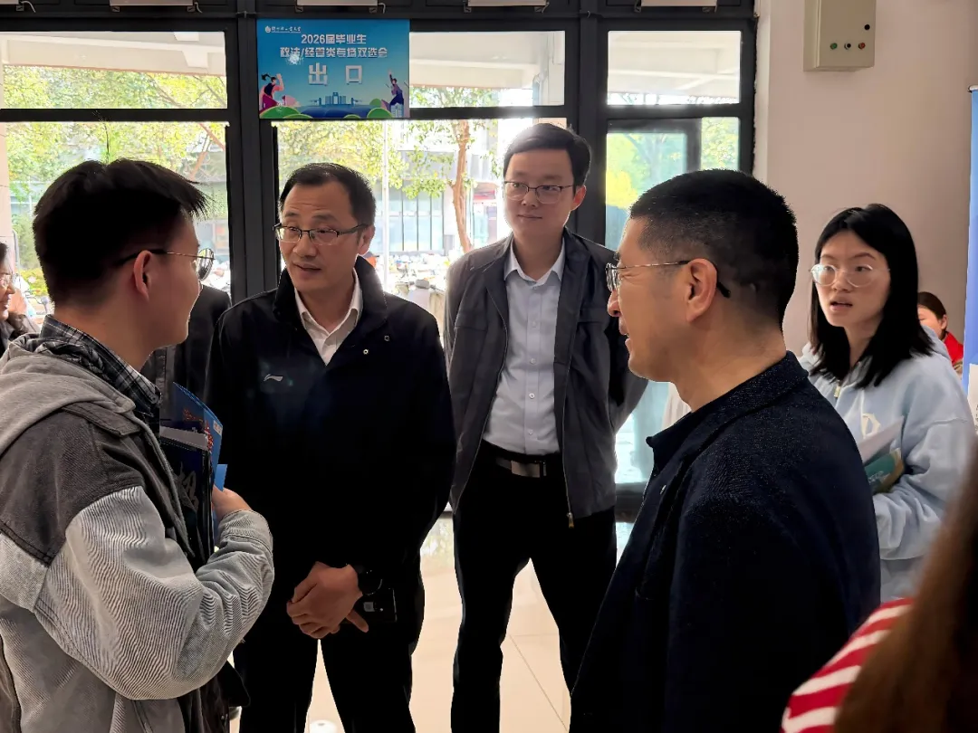 4月9日下午,学校2026届政法、经管类毕业生专场双选会在科学校区就业服务大厅成功举办。学校党委副书记杨新宇、纪委书记顾兴良莅临活动现场,开展工作指导与调研。