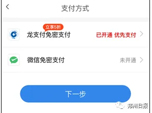 选择支付方式,前往【我的】-【支付方式】页面开通支持刷脸乘车的免密支付方式。当前刷脸乘车仅支持龙支付与微信免密支付(暂不支持支付宝)。