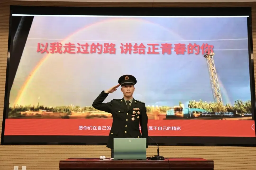 同时他也坦然讲述成长路上的缺憾,身体承受的负荷、人生规划的变故、错过的发展机遇,都是选择从军所要承担的代价。正是这份真实的感悟,让同学们明白:所有荣光都伴随着付出,所有坚守都需要懂得取舍,爱国从来不是一句口号,而是义无反顾的坚持与付出。