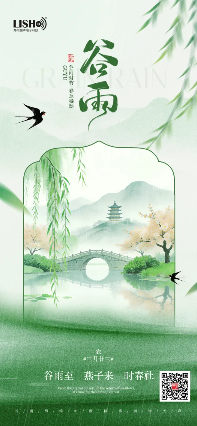 当细雨漫过窗台,布谷鸟在枝头唤出清脆的“播谷”声,我们迎来了春季最后一个节气——谷雨。《群芳谱》有言:“谷雨,谷得雨而生也”,此时太阳到达黄经30°,寒潮渐退,气温攀升,一场场春雨恰似大自然的馈赠,让田垄间的秧苗、枝头的繁花都浸润着生长的力量 。这是春的收尾,也是夏的序章,藏着最饱满的生机与最温润的诗意。