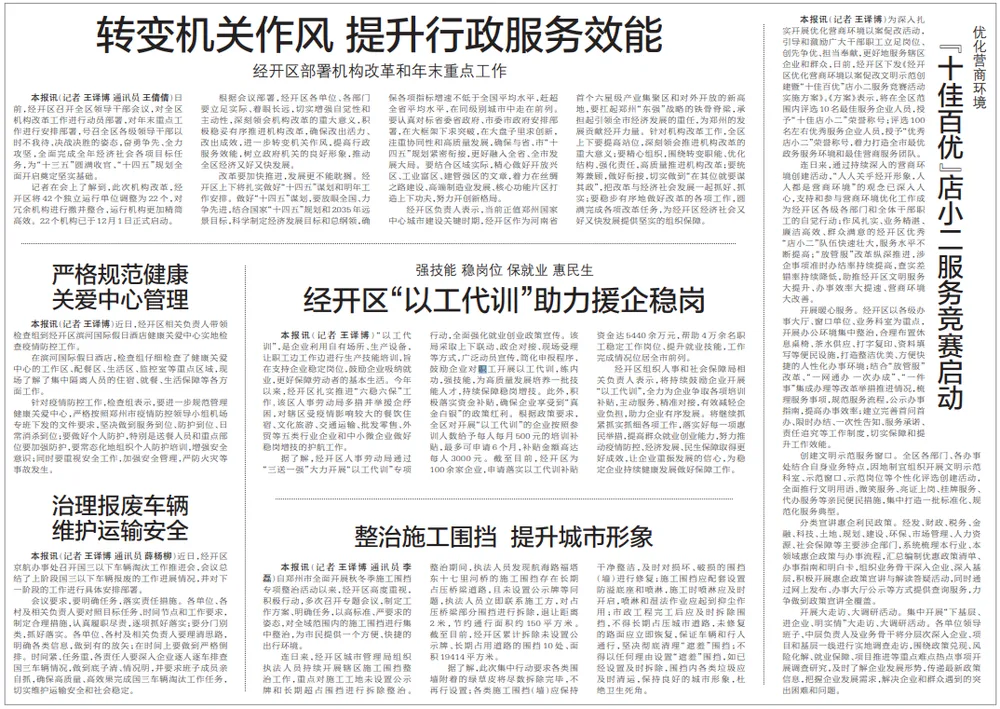 为深入扎实开展优化营商环境以案促改活动,引导和激励广大干部职工立足岗位、创先争优、担当奉献,更好地服务辖区企业和群众,日前,经开区下发《经开区优化营商环境以案促改文明示范创建暨“十佳百优”店小二服务竞赛活动实施方案》。《方案》表示,将在全区范围内评选10名最佳服务企业人员,授予“十佳店小二”荣誉称号;评选100名左右优秀服务企业人员,授予“优秀店小二”荣誉称号,着力打造全市最优政务服务环境和最佳营商服务团队。