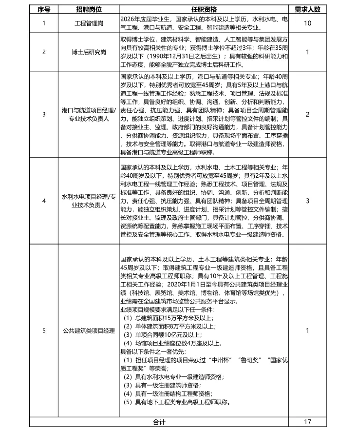河南中豫建设投资集团股份有限公司(以下简称“中豫建投集团”)是经河南省委、省政府批准组建的省管国有骨干企业。前身为1953年成立的河南省建筑工程局,业务涵盖投融资、设计运营、施工建设、房地产及产业园区开发运营、城市更新、建材及供应链等领域,具有一体化工程总承包能力和全产业链优势,先后承建了平顶山帘子布厂、安阳玻壳厂、河南博物院、塞内加尔友谊体育场等一批国内外标志性工程,服务保障全省“两城一谷”科创高地、“三个一批”重点项目、地产纾困和高标准农田及其示范区建设等重大战略实施,是全省城乡建设的主力军、“建筑豫军”品牌的主载体、推进建筑业全产业链发展的主抓手、重组整合建筑业板块打造省级“大建工”的主平台。因企业发展和人才队伍建设需要,现面向社会和2026年应届毕业生进行公开招聘,具体事宜如下: