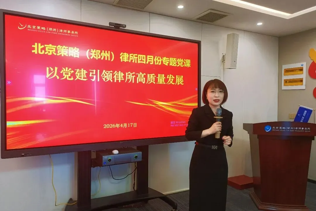 为深入学习贯彻习近平新时代中国特色社会主义思想和习近平法治思想,全面落实新时达党的建设总要求,充分发挥党建对律所发展的政治引领作用,推动律所各项工作高质量发展,2026年4月17日,北京策略(郑州)律师事务所党支部组织开展“以党建引领高质量发展”专题党课。律所党支部书记殷晓旭律师携全体党员律师及部分非党员骨干律师共同参与学习。