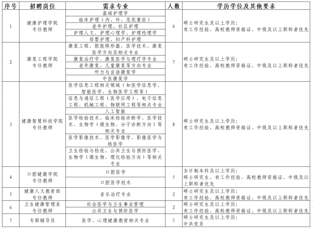根据学校发展需要,现面向社会招聘以下岗位人员: