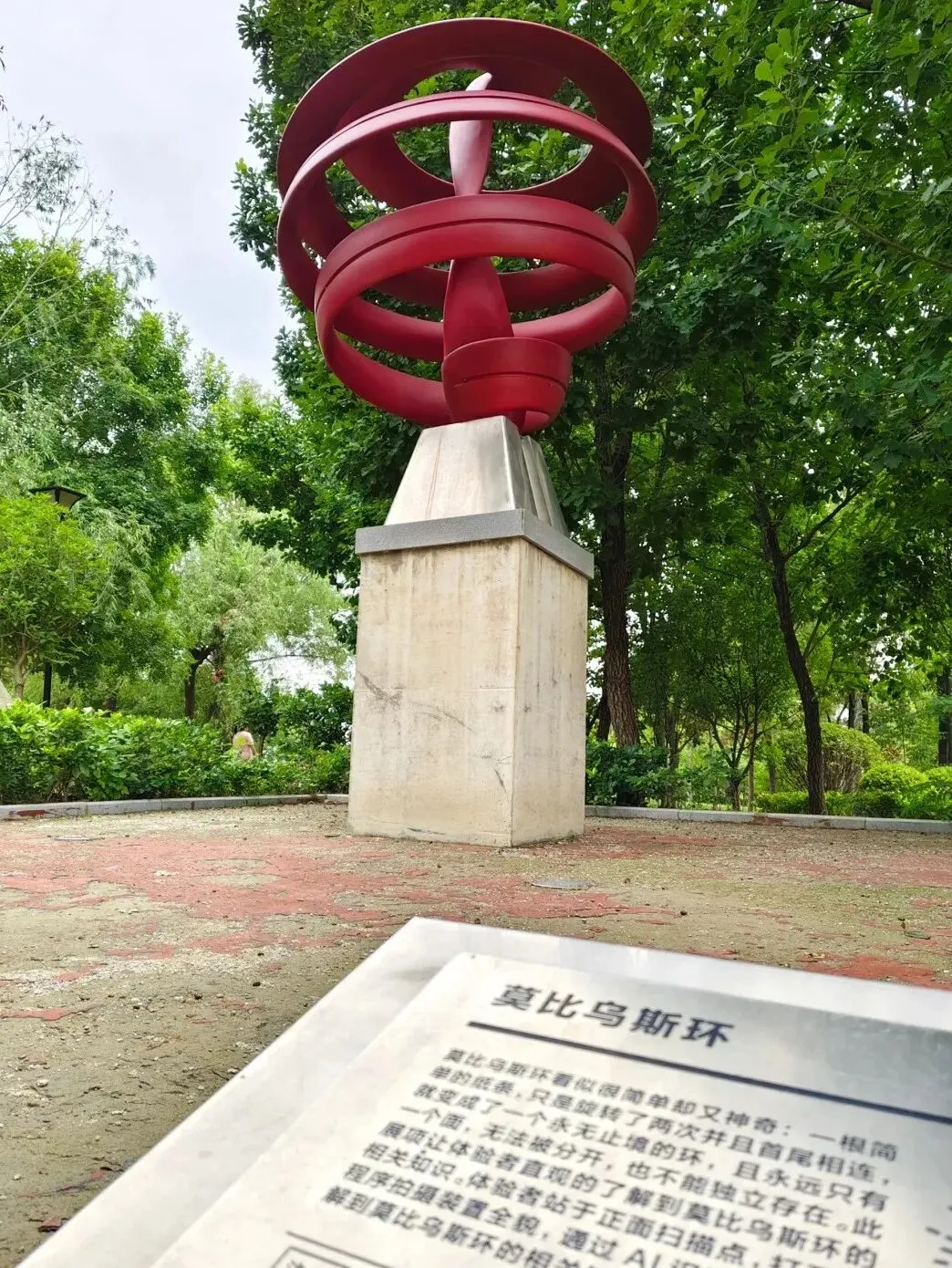 园内随处可见充满巧思的雕塑:克莱因瓶、莫比乌斯环、分子结构、地震模型……甚至每一块石头上都可能写满了公式,文学与科学的氛围在这里奇妙交融,拉满格调。
