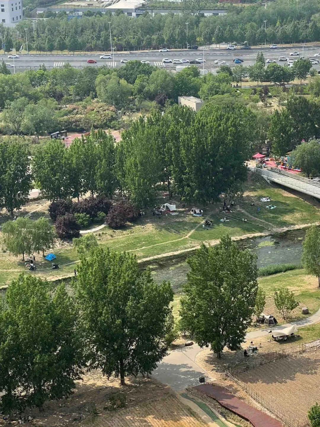 在郑州南三环的十八里河畔,太适合露营野餐了。
