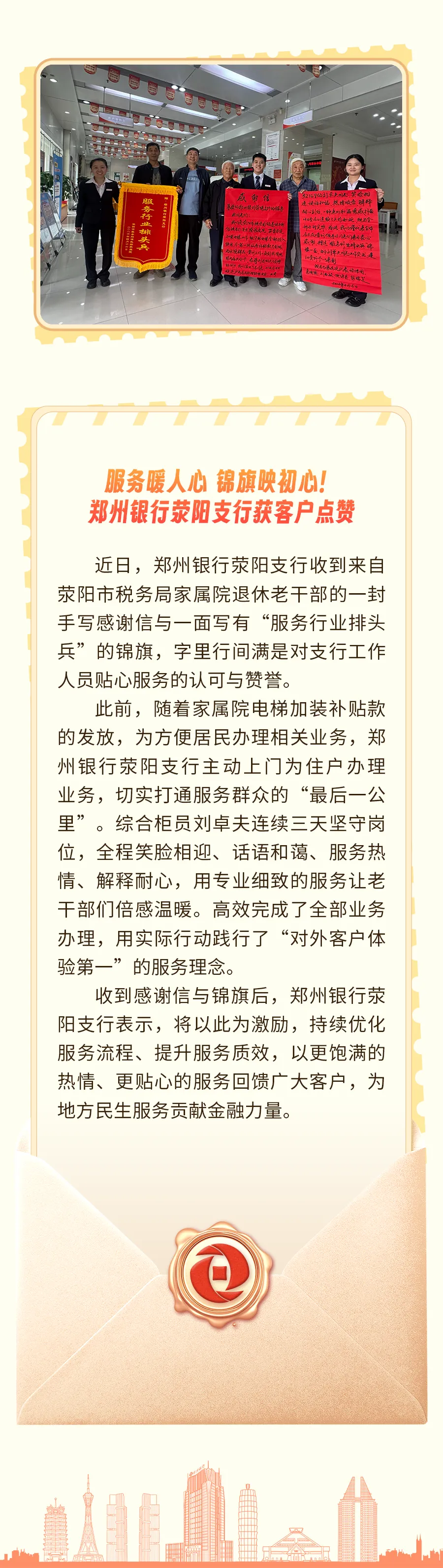 郑银暖心事丨锦旗致谢意 服务暖人心!郑州银行荥阳支行获客户点赞