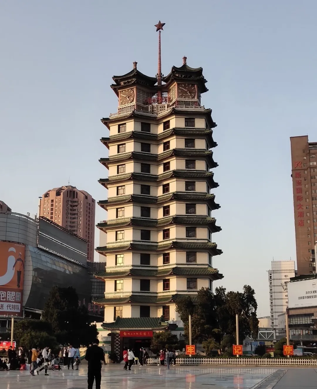 二七塔我去的时候是下午四点多,人不算多,但也不冷清,就是那种刚好的状态。很多人拍完照就走了,但我在旁边那个德化街转了一圈,怎么讲呢,那条街其实比塔本身更有意思,全是老字号和小吃摊,关键是价格便宜到离谱,我吃了个胡辣汤配油条才八块钱,味道是真不错,不是游客区那种敷衍的做法。