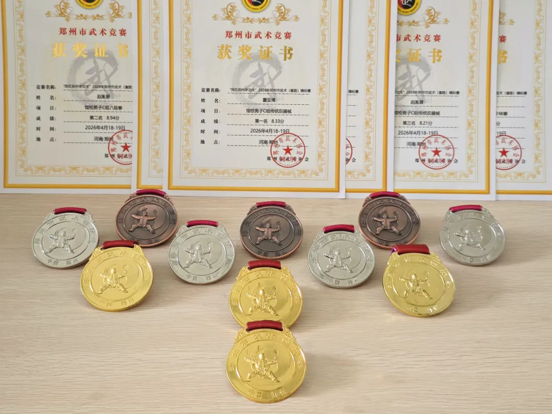 4月19日,“我在郑州学功夫” 2026 年郑州市武术(套路)锦标赛在郑州市体育馆圆满落幕。来自登封万羊武术中等专业学校的武术健儿们,以扎实功底、昂扬斗志,在强手如林的赛事中奋勇拼搏,最终斩获金牌 4 枚、银牌 4 枚、铜牌 3 枚,以 11 枚奖牌的骄人战绩,展现万羊学子文武兼修、勇攀高峰的卓越风采!