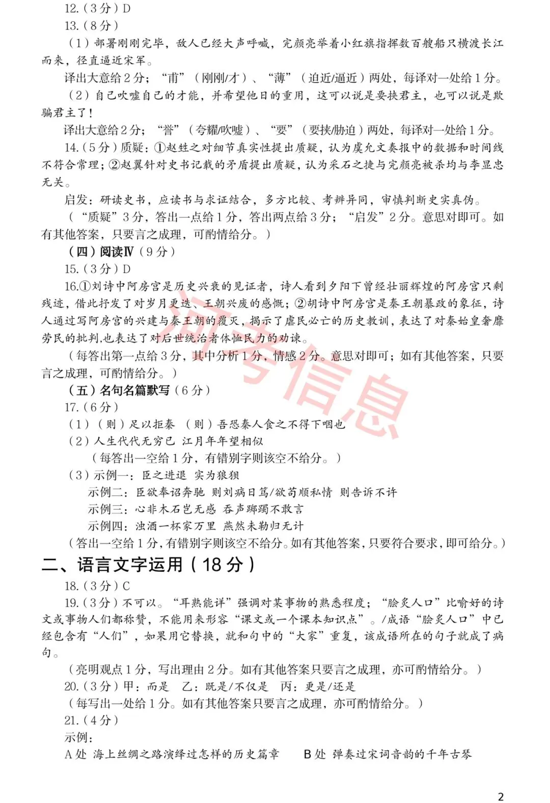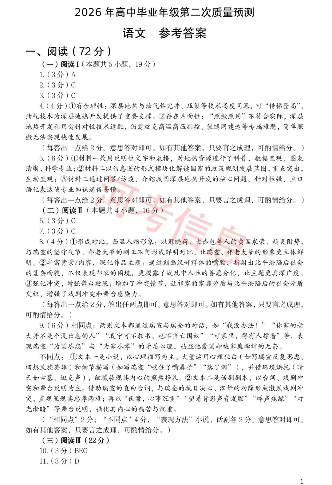 >【语文答案】2026郑州高三二模 | 2026年高中毕业年级第二次质量检测【语文】参考答案