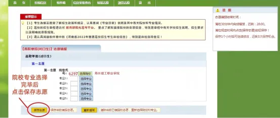 注意:志愿保存成功,志愿才有效。