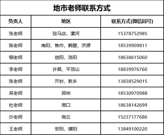 各区域招生咨询老师电话