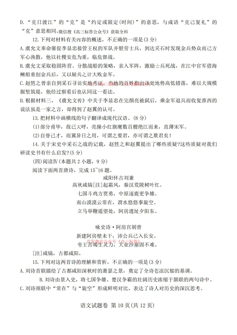 【语文答案】2026郑州高三二模 | 2026年高中毕业年级第二次质量检测【语文】参考答案