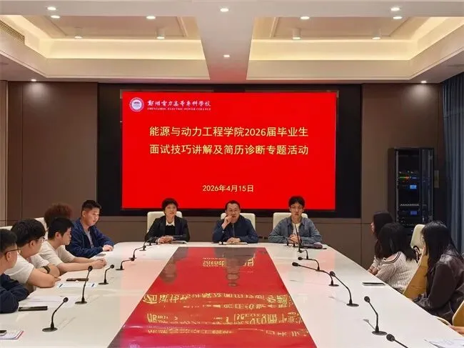 为破解2026届毕业生面试紧张、简历针对性不强等求职痛点,精准对接供需、提升求职竞争力,助力毕业生高质量就业,郑州电力高等专科学校能源与动力工程学院于4月15日组织开展“2026届毕业生面试技巧讲解及简历诊断专题活动”,以精准指导为毕业生就业赋能。 本次活动围绕“精准指导、靶向赋能”核心,组建由学院党总支书记、副院长牵头,专业就业指导老师为骨干的指导团队,为学生提供全方位、个性化求职支持。