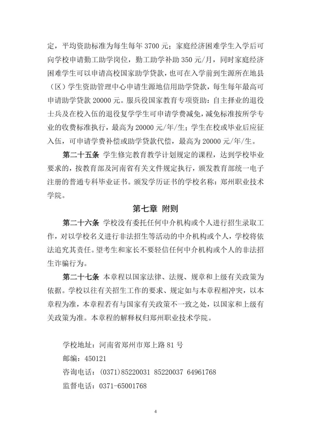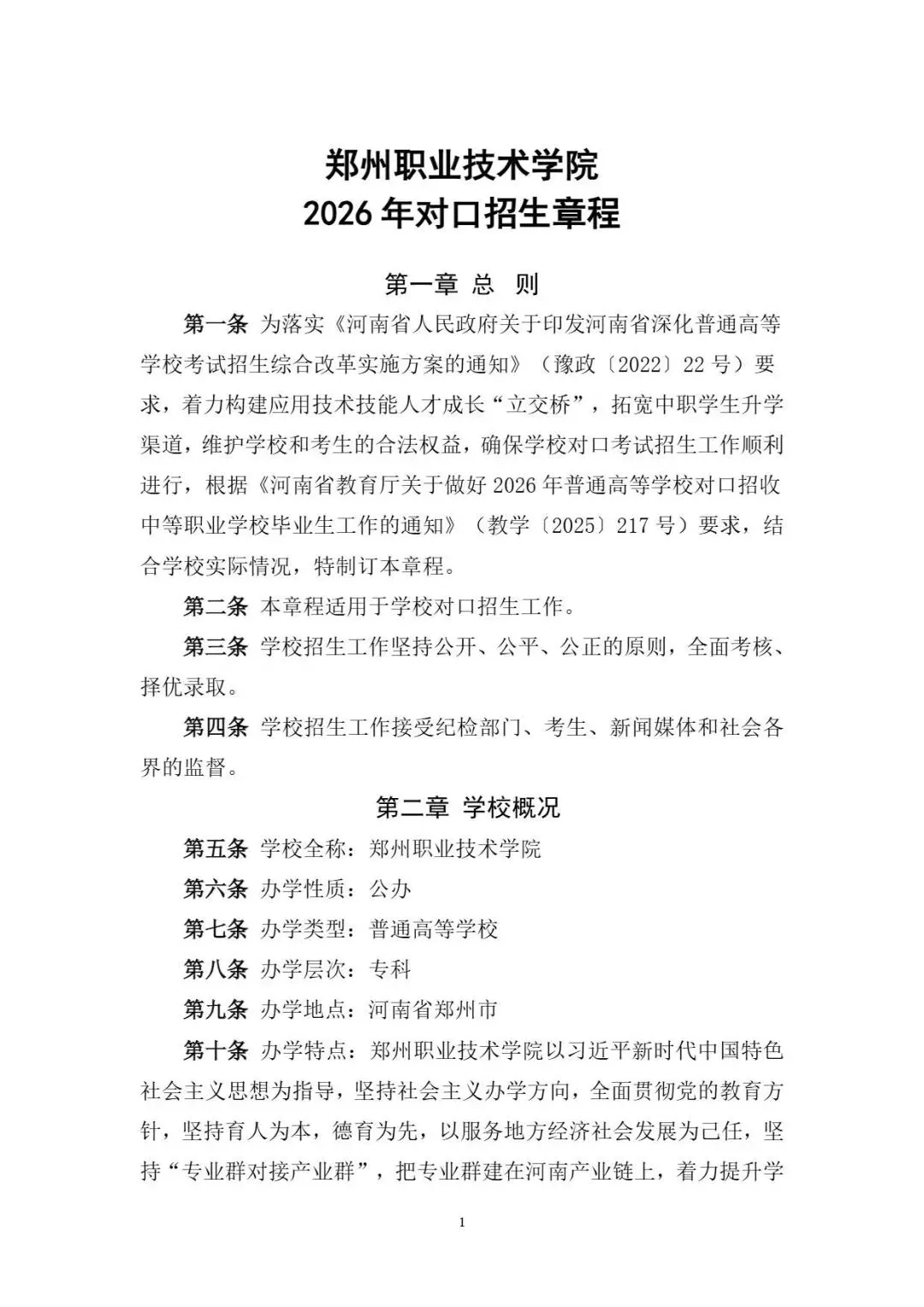 >【院校推荐】单招升学院校推荐:郑州职业技术学院~2026年单招招生章程