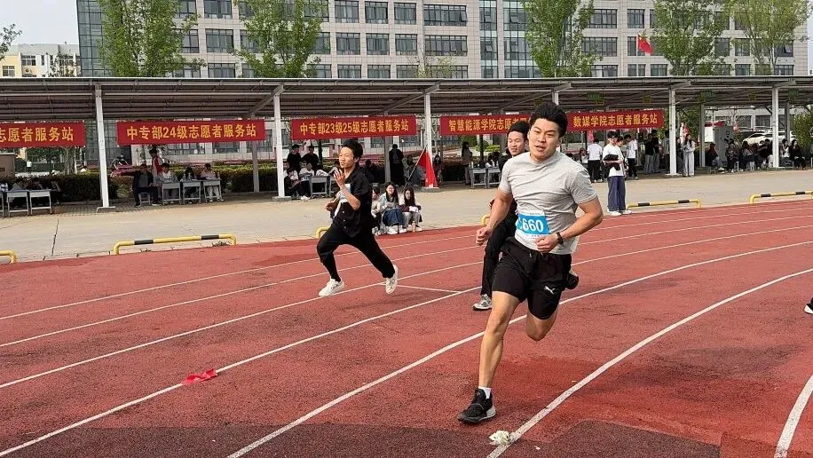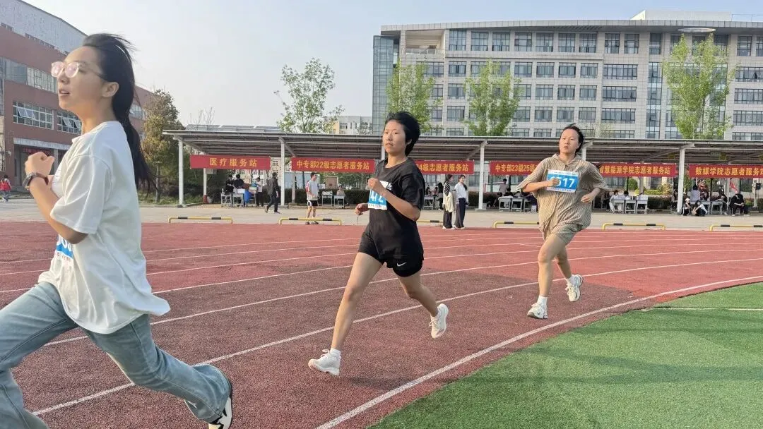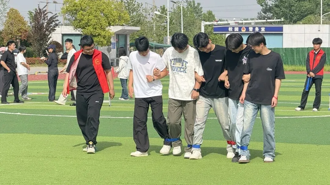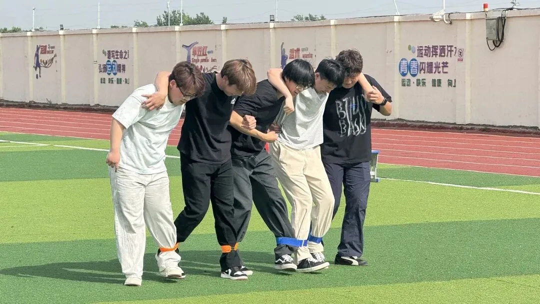 “一二!一二!” 五人六足赛场上,22级五年制计算机 3 班的同学们绑着腿排成 “蜈蚣阵”。跌倒、爬起、调整节奏,他们喊着整齐的口号冲向终点。