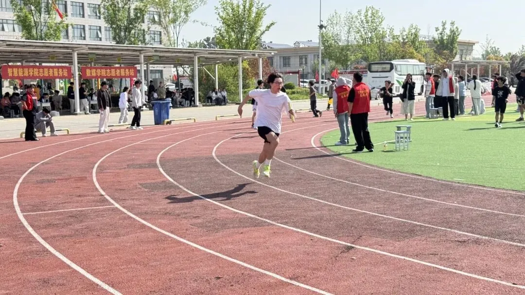 另一边,中职组混合团体跳绳比赛中,24级五年制会计3班选手在翻飞的绳影中穿梭,2 分钟零失误完成386次跳跃,刷新校史最佳战绩。