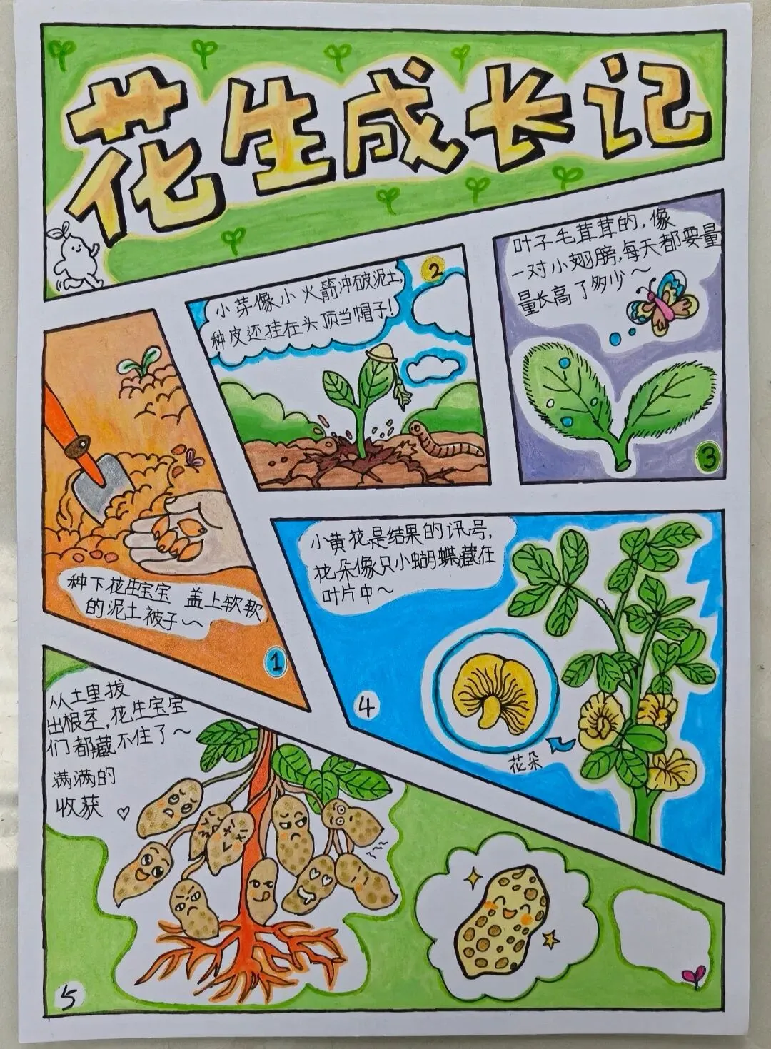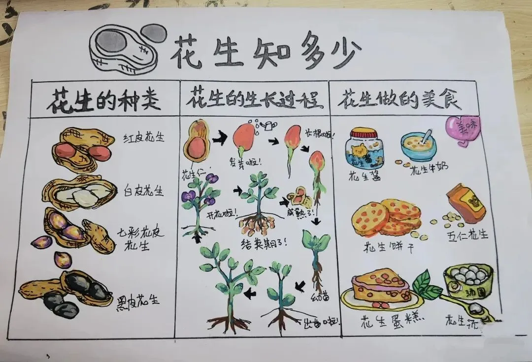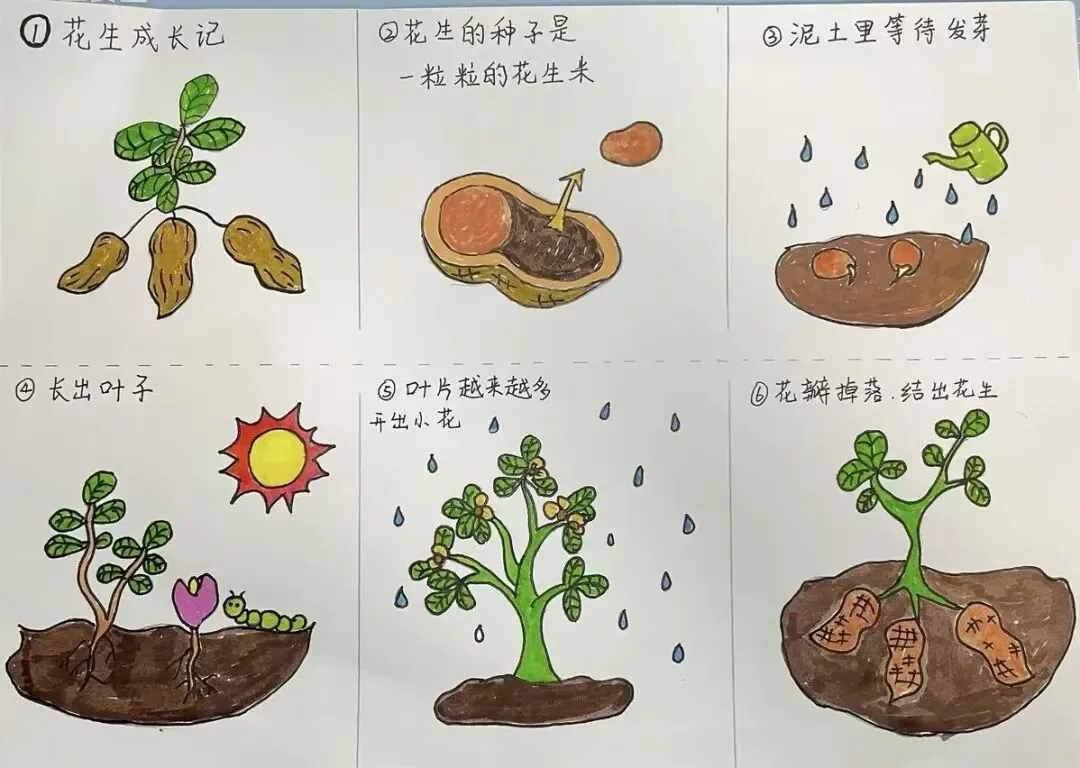 谷雨节气来临之前,三年级科学课上,开展了“探究花生的一生”的活动。同学们通过绘制手抄报,展示花生从发芽、长苗、开花到结果的生长历程。在这个过程中,大家观察、记录花生生长变化,亲手种下花生种子,直观感受生命奇妙,提升科学观察与实践能力。