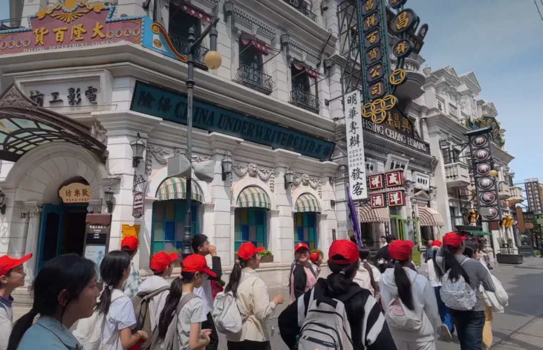 午后,同学们踏入建业·华谊兄弟电影小镇,穿行电影大道,探秘电影工坊,穿越时光匣子,在《穿越德化街》实景演出里,触摸光影艺术的匠心,感受科技与创意交织的独特魅力。
