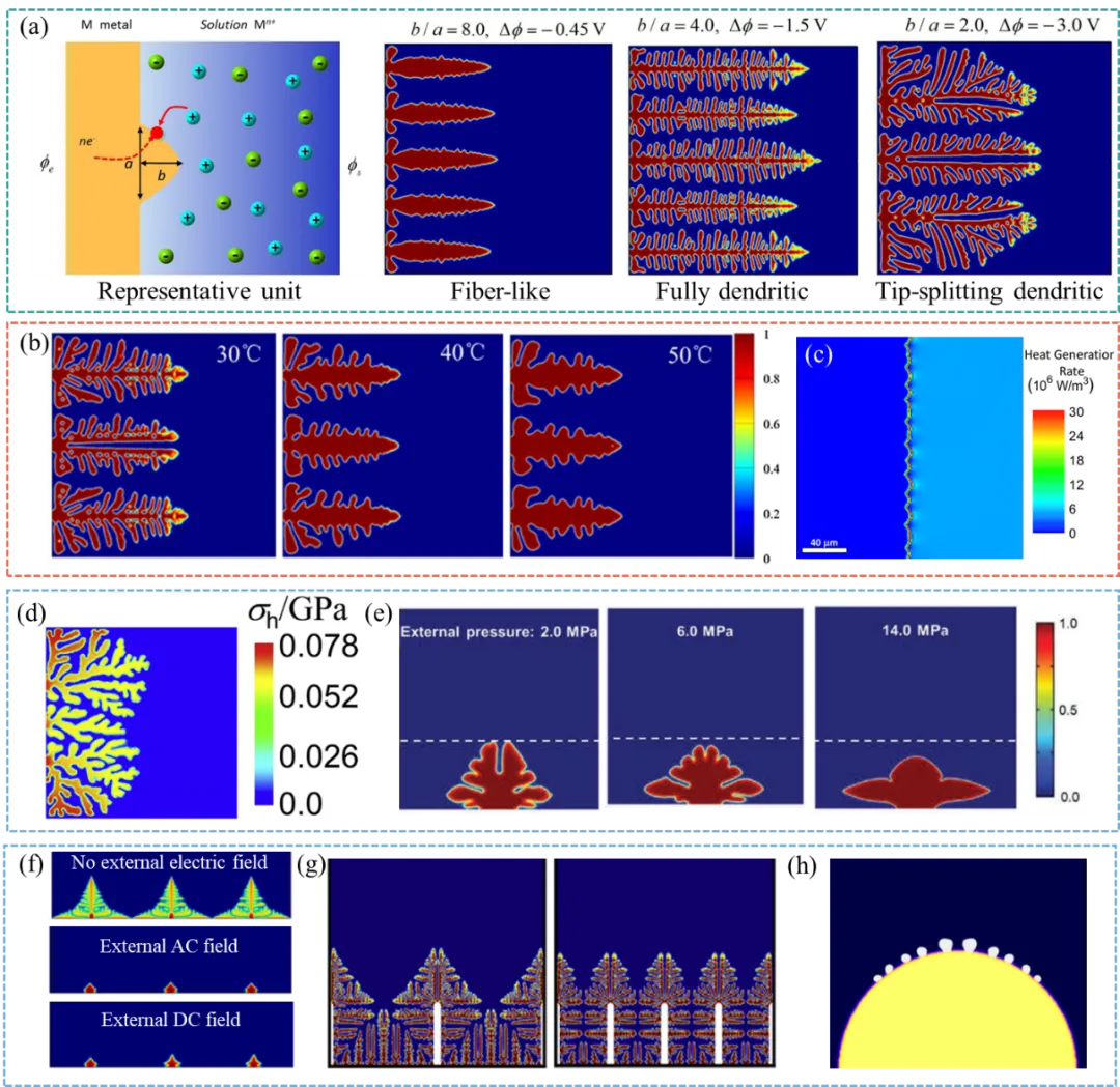 图7. 相场模型在锂枝晶生长中的应用