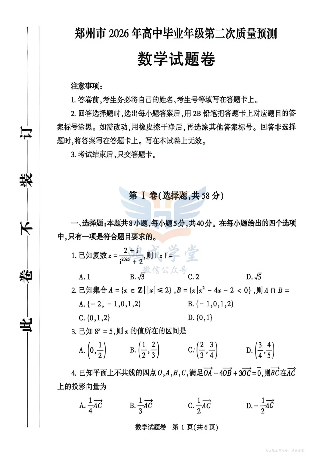 (郑州二模)郑州市2026年高中毕业年级第二次质量预测