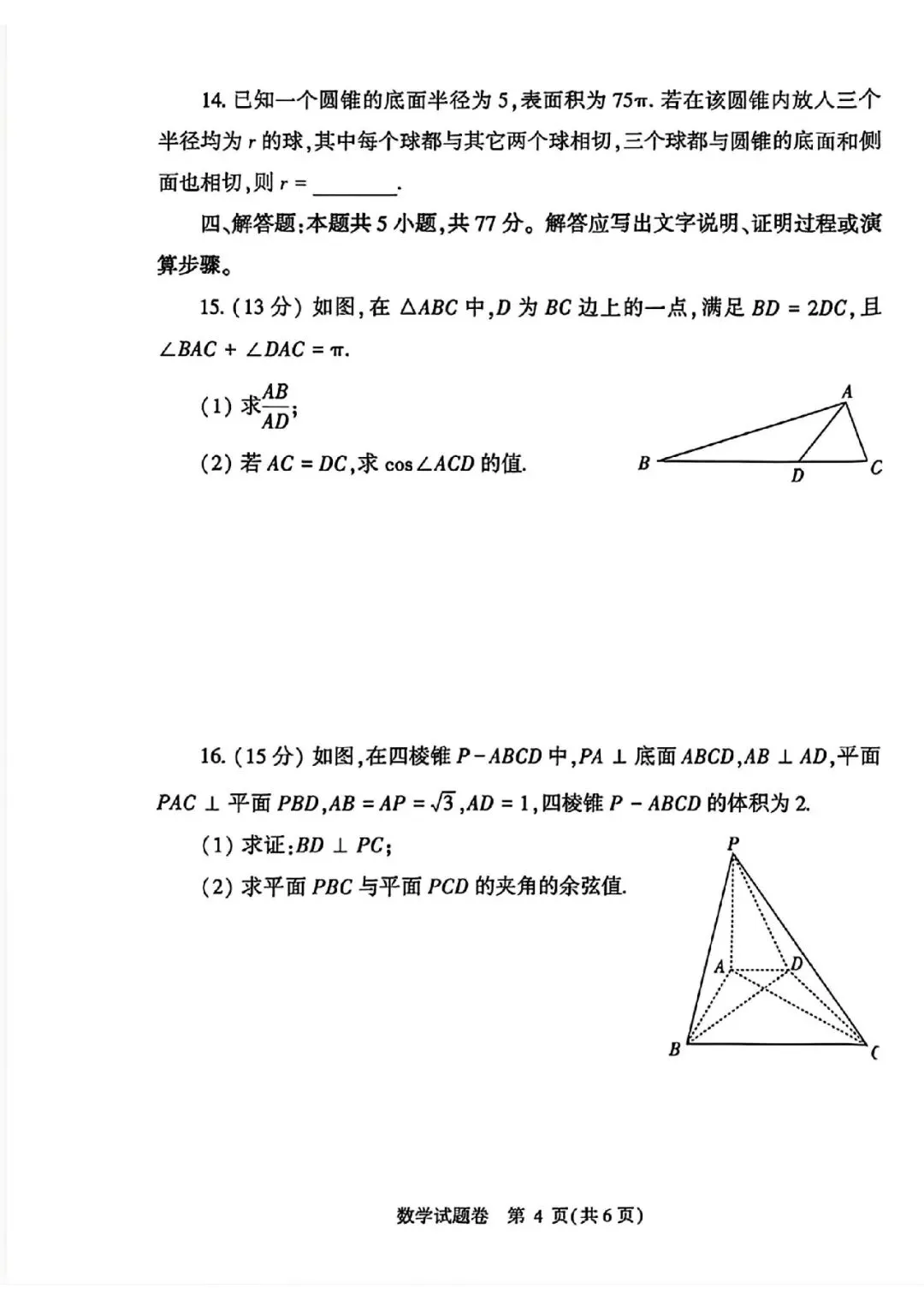 >【260420】郑州市2026年高中毕业年级第二次质量预测数学试题卷