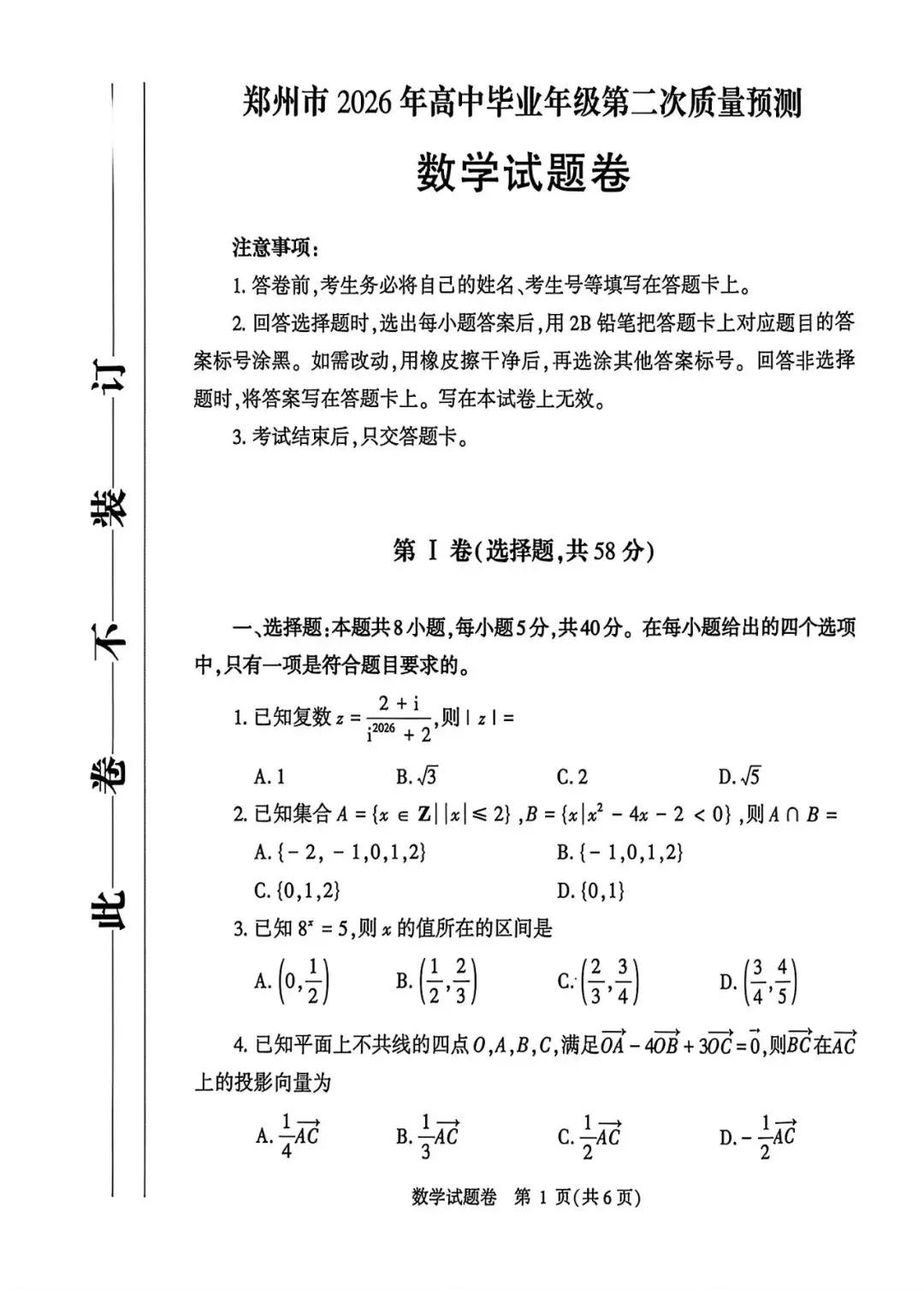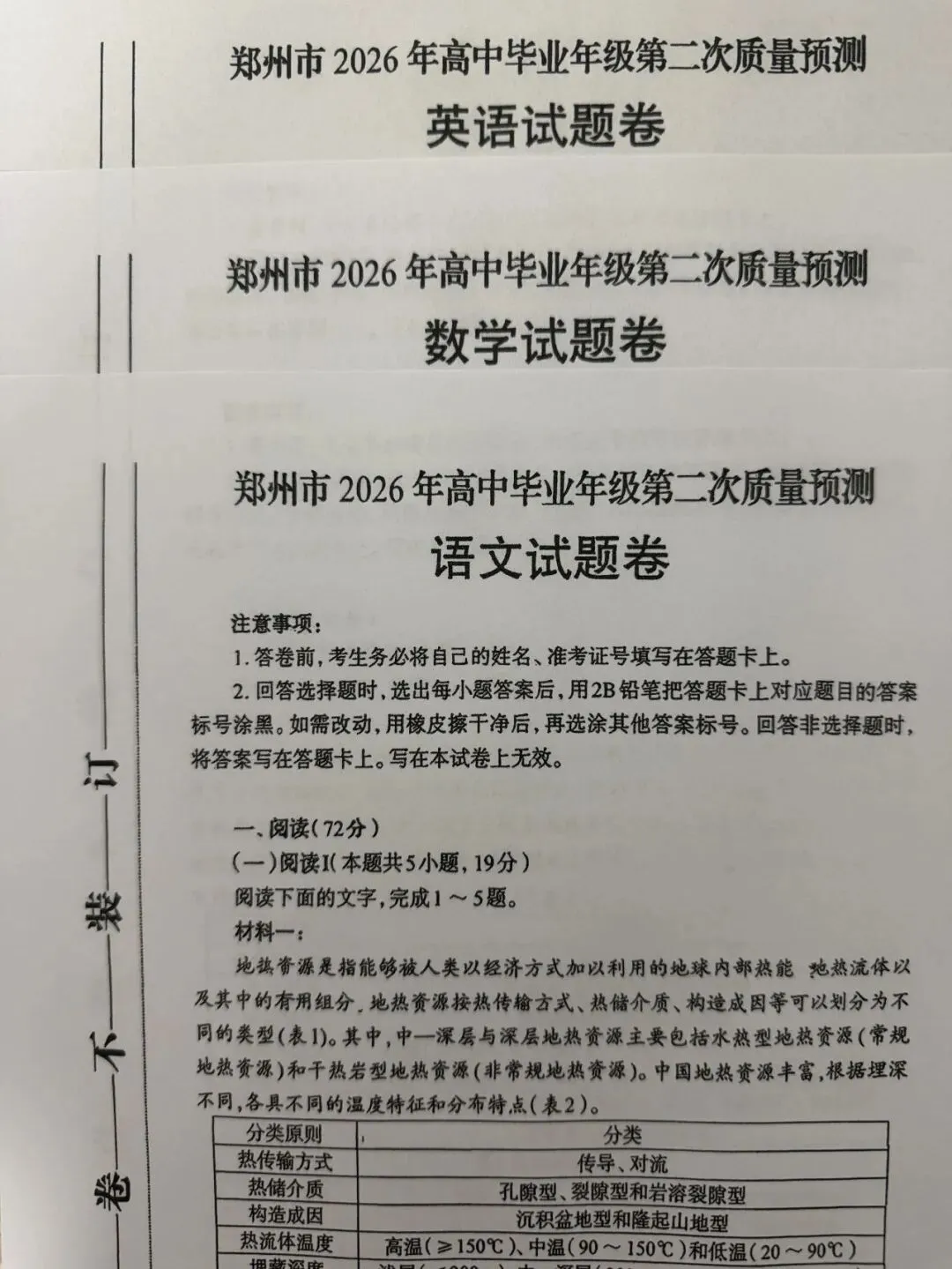 考试名称:郑州二模郑州市2026年高中毕业年级第二次质量预测