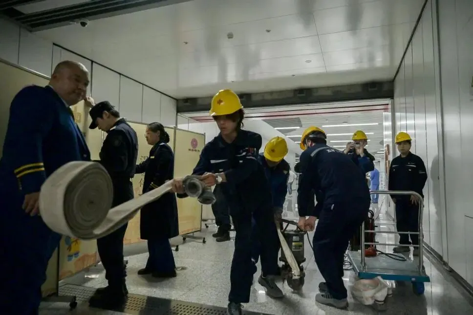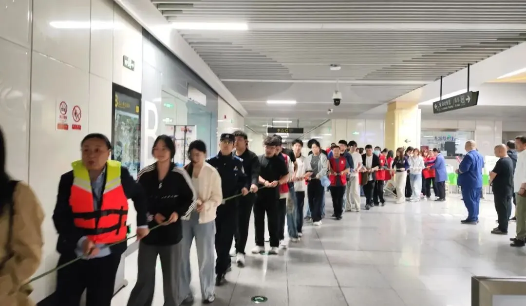 活动当天,美术学院党总支部分教师党员和学生代表在田书记的带领下参与演练。演练模拟了暴雨天气下地铁站及周边区域出现积水倒灌、人员受困等紧急情况,各单位按照预案迅速响应,密切配合,有序开展了应急疏散、沙袋封堵、伤员救护、排水处置等环节。通过实战化模拟,进一步检验了应急预案的可行性和各单位间的协同配合能力。