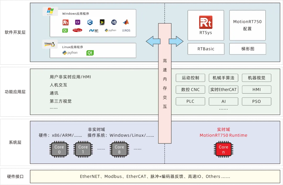内置强实时运动控制内核MotionRT750,支持第三方视觉软件。