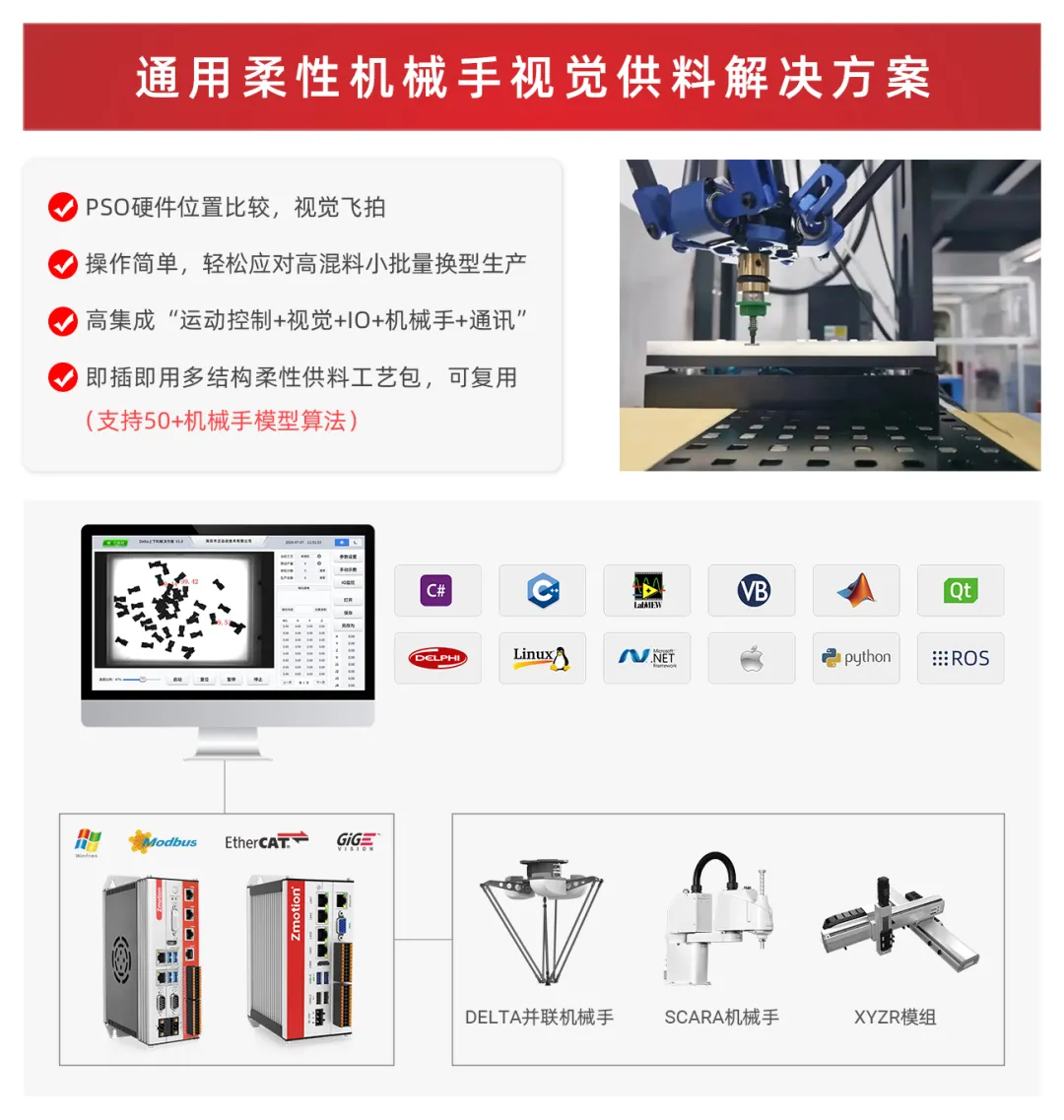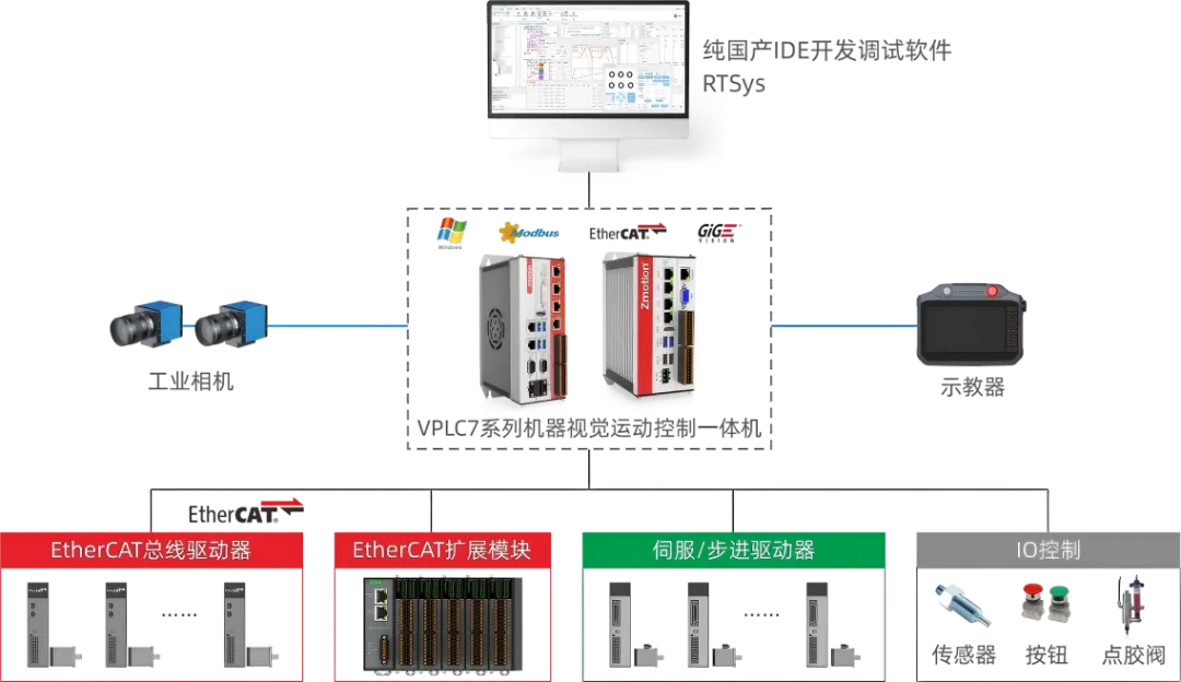 提供一体化开放式IPC形态的实时软控制器/软PLC集成的视觉+运动控制解决方案。面向多场景“视觉+运动控制”应用,可灵活配置与升级。相较传统封闭式“视觉+运控”硬件堆叠方案,可显著降低定制与迭代成本,缩短联调周期,强化数据交互实时性,降低项目落地与运维复杂度。