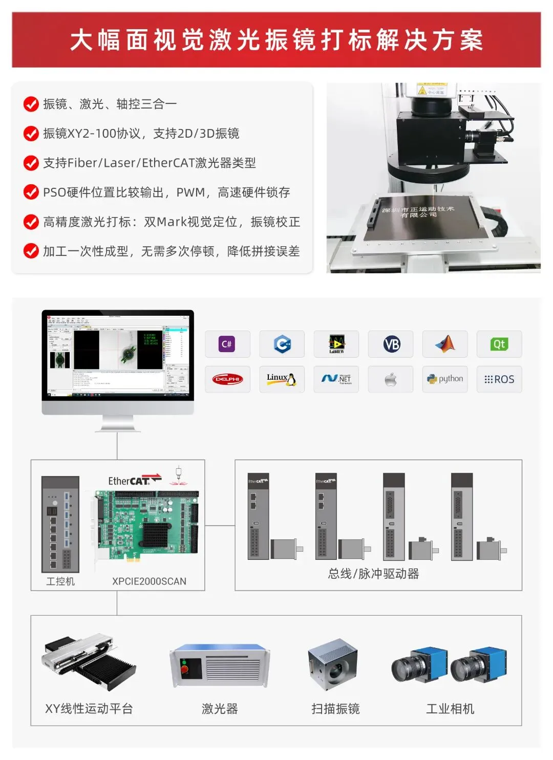 可应用于飞行、旋转、大幅面、多轴联动、多工位等激光打标、切割、焊接、打孔。