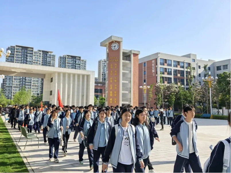 清晨校园,阳光正好,红旗飘扬。同学们身着校服、精神饱满,在班主任与带队老师组织下有序集结。出发前,学校强调安全纪律与文明游览要求,将生态文明教育、集体主义精神、文明礼仪素养融入行前教育,鼓励大家在行走中学习、在体验中成长。一声 “出发”,车队满载期待驶向园博园,少年朝气与春日生机交相辉映。