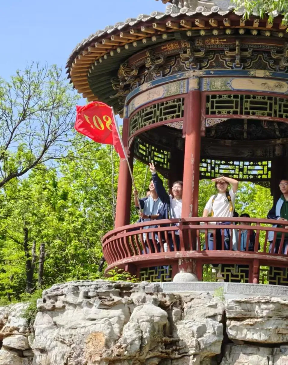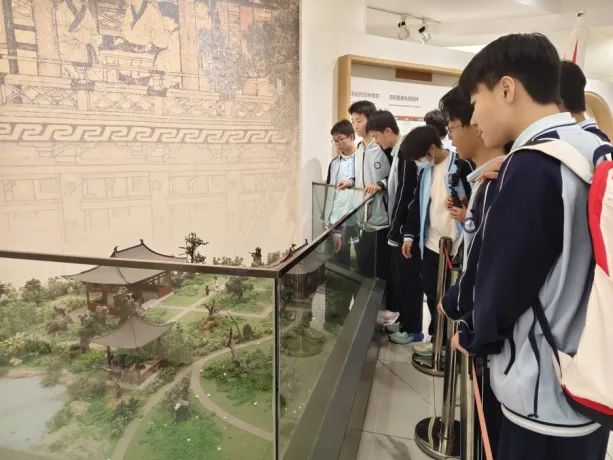 还有的班级围绕文化研学、诗词寻踪开展主题实践活动。同学们漫步各省市展园,品读牌匾楹联、探寻建筑形制,对照所学古诗词与园林建筑一一匹配,感受中华传统园林艺术的博大精深,在实景中提升综合素养。