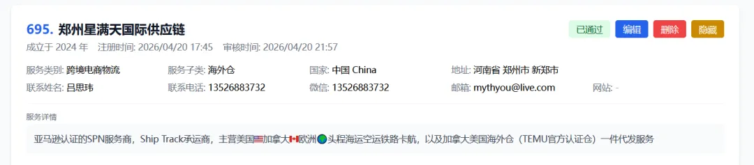 ① 亚马逊 SPN / TEMU 认证仓的服务商越来越多。 这两年跨境电商往北美和欧洲的爆发是真实的,海外仓+一件代发是个明显的增量市场。