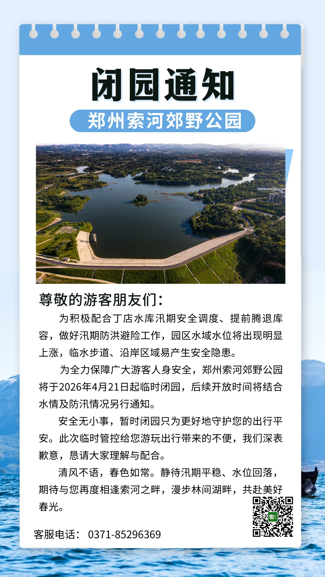 >郑州索河郊野公园闭园通知!